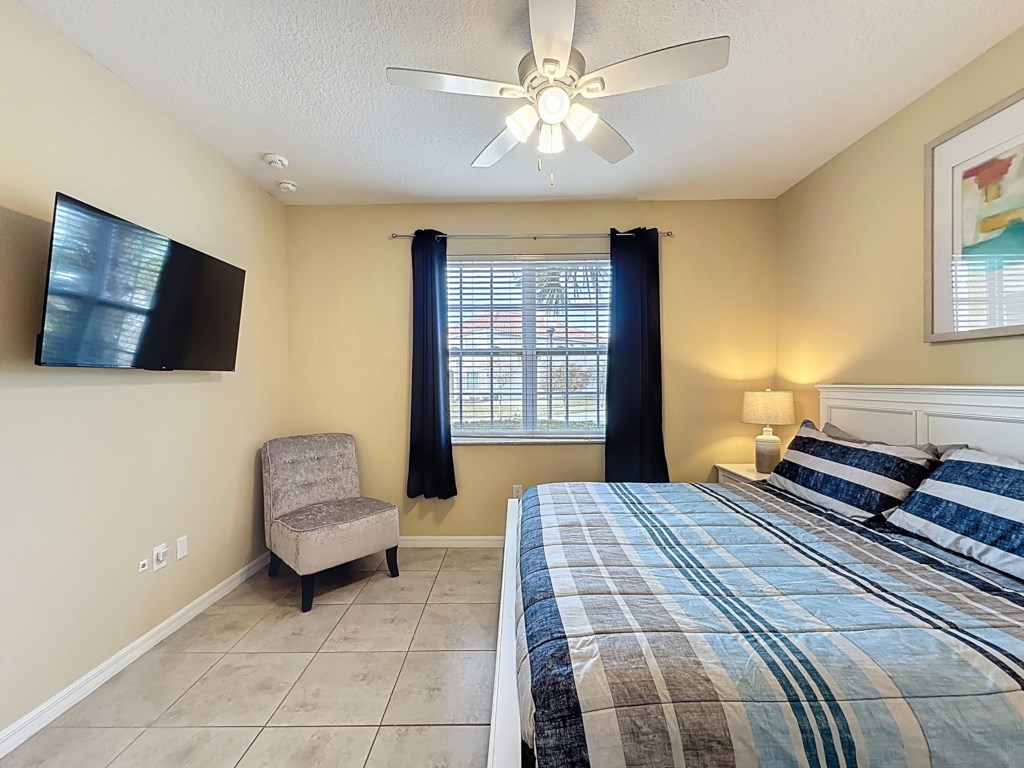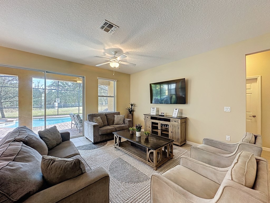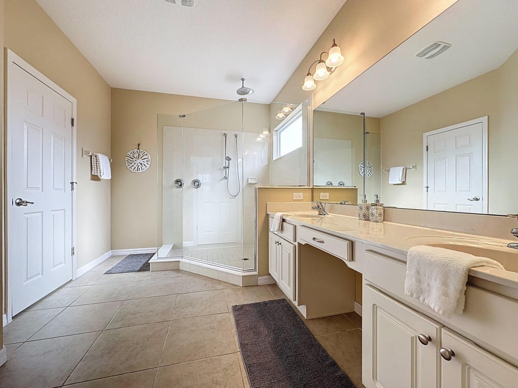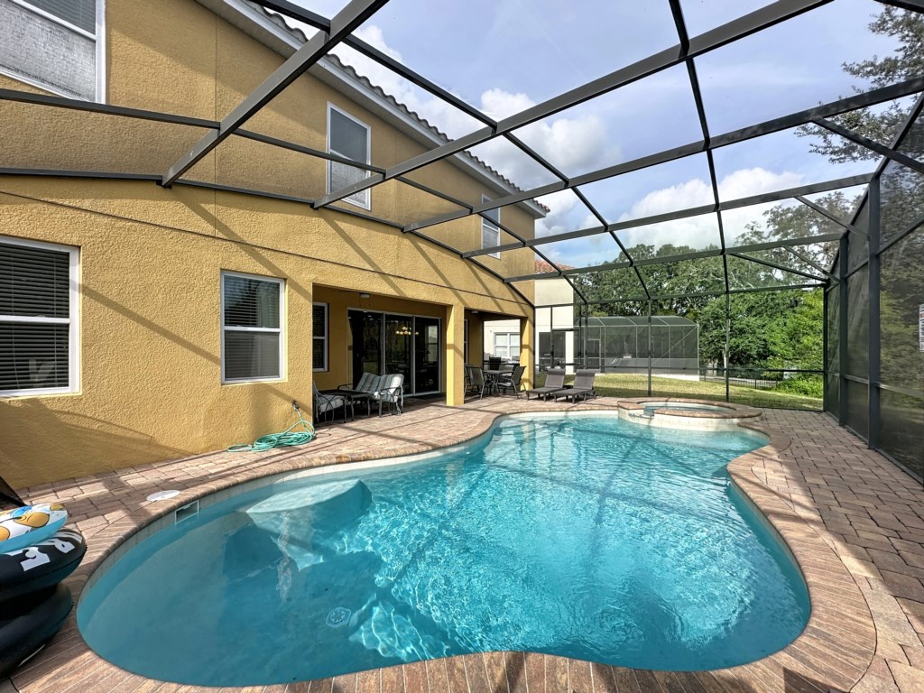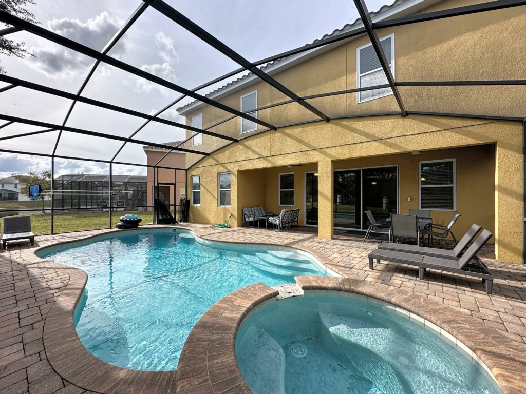 Pool: After long hours in parks and shopping centers, it is wonderful to come back to your own private South East facing pool area. As you aren’t overlooked in the back, you can thoroughly enjoy dining al fresco or drinks by the pool side. Here you can relax in the sun on one of the 4 loungers, or take a refreshing swim in the lovely pool. The villa is equipped with extra large pool area. The terrace is partially covered so you can pull into the shade during the hottest parts of the day. The pool is surrounded by netting to protect against bugs and UV rays. Pool area features: -lake view -4 loungers -pool heat is available at an additional cost.