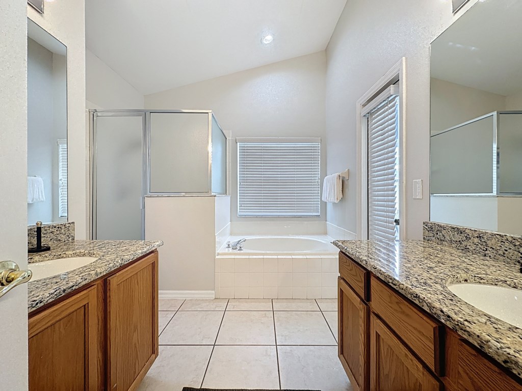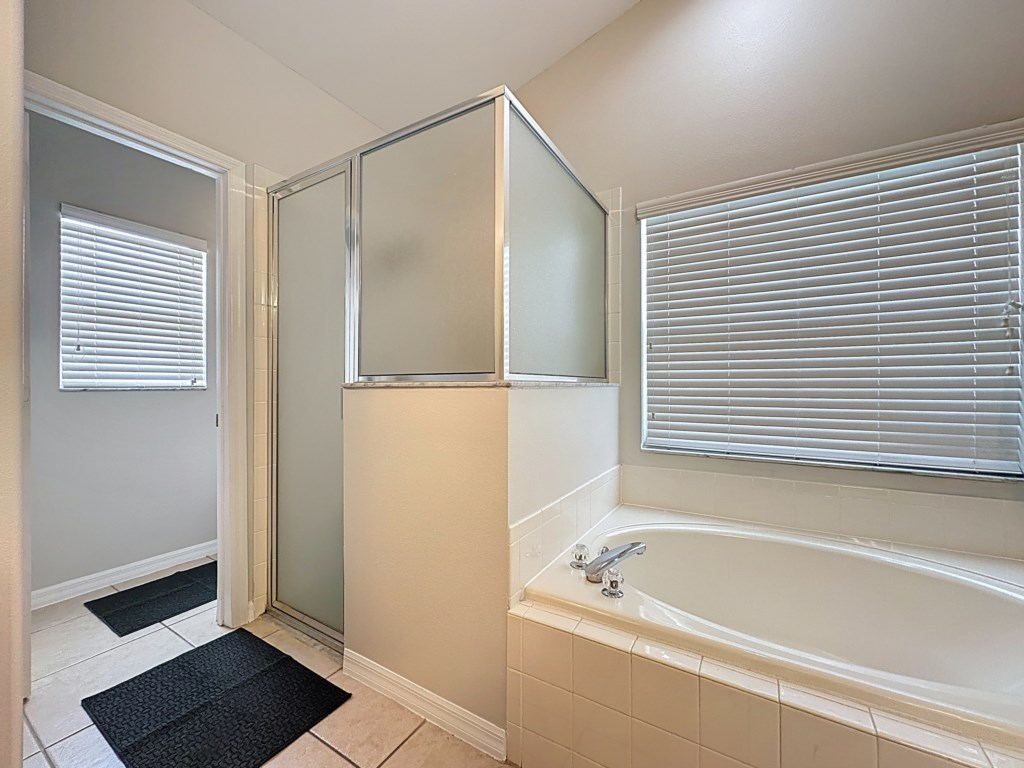 Bedroom 1: King (master suite with attached full bathroom with separate shower and bath)