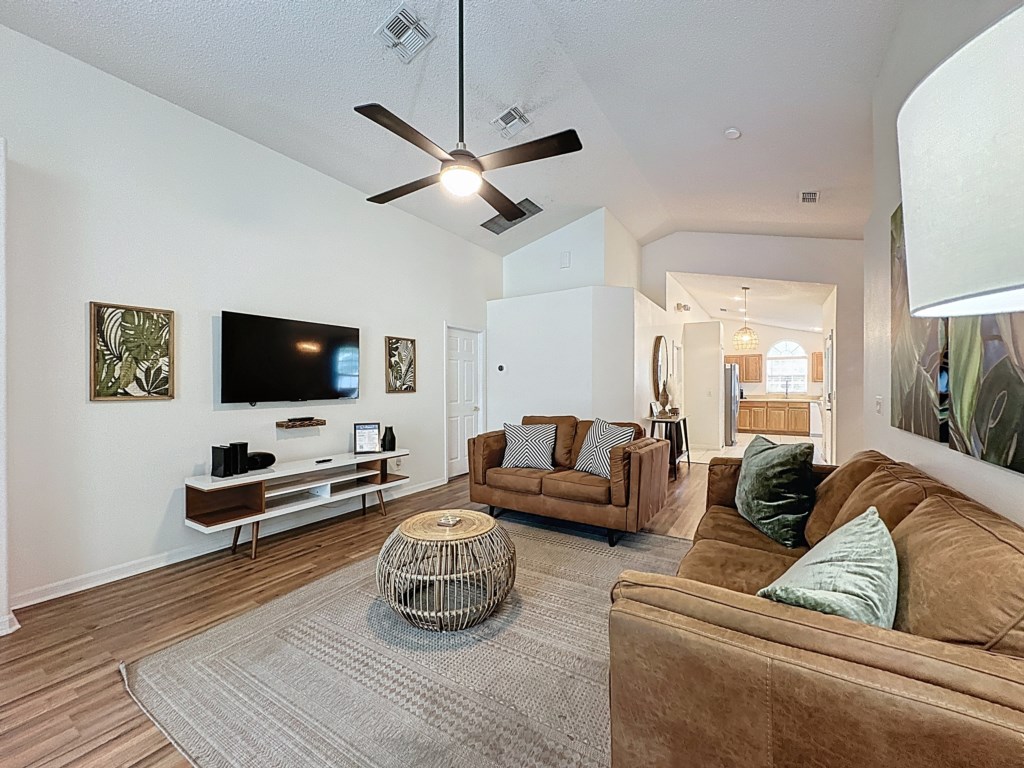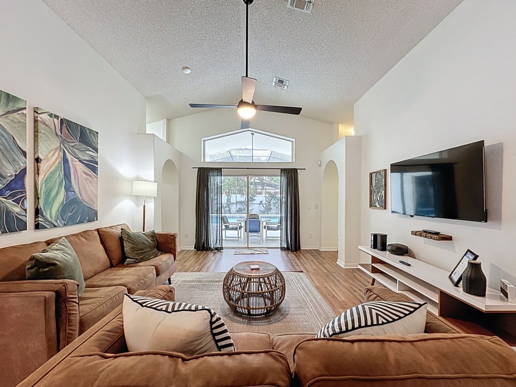 Kick back in this remodeled 4BR, 3BA retreat with a private pool/spa and a ping pong game room. Every bedroom has a Smart TV, plus there’s fast WiFi, a fully equipped kitchen, and parking for 2 cars. Just 10 mins from Walmart, 15 mins from Universal & Disney, and 18 mins from top attractions.